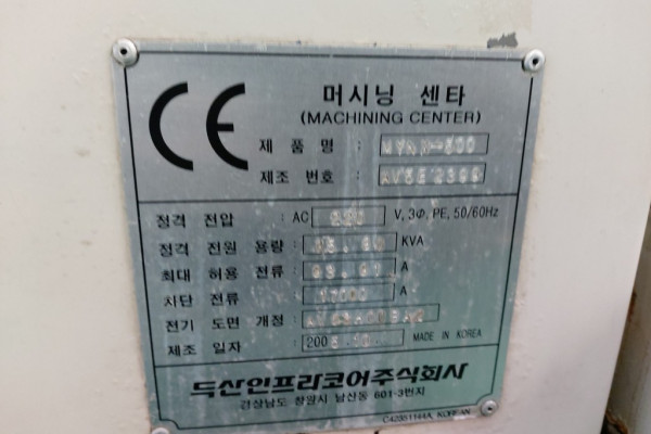 두산머시닝센타(두산5호기, Mynx500, 2005년식) 요약정보