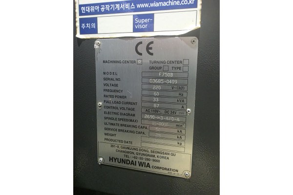 1. 위아7호 머시닝센타 F-750B